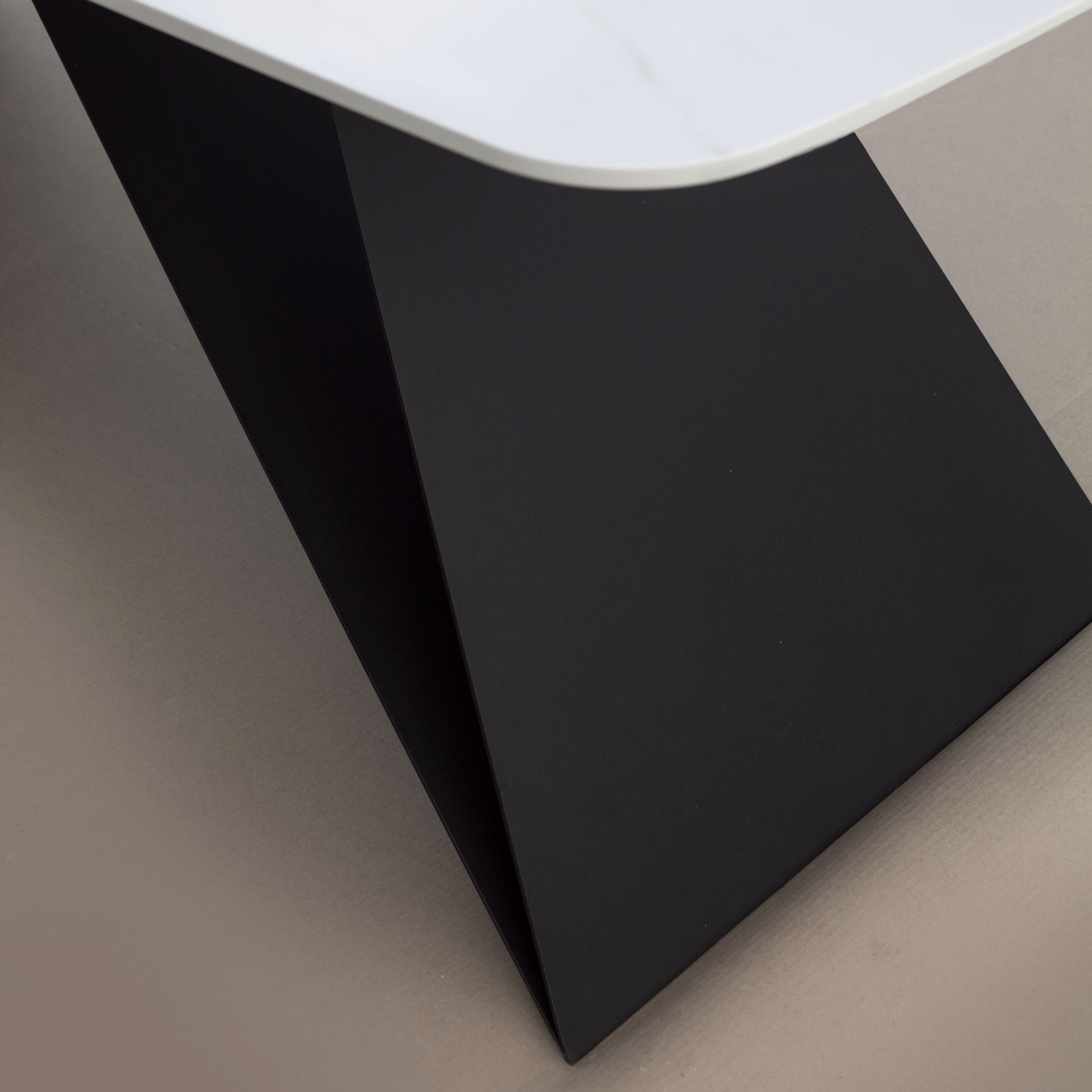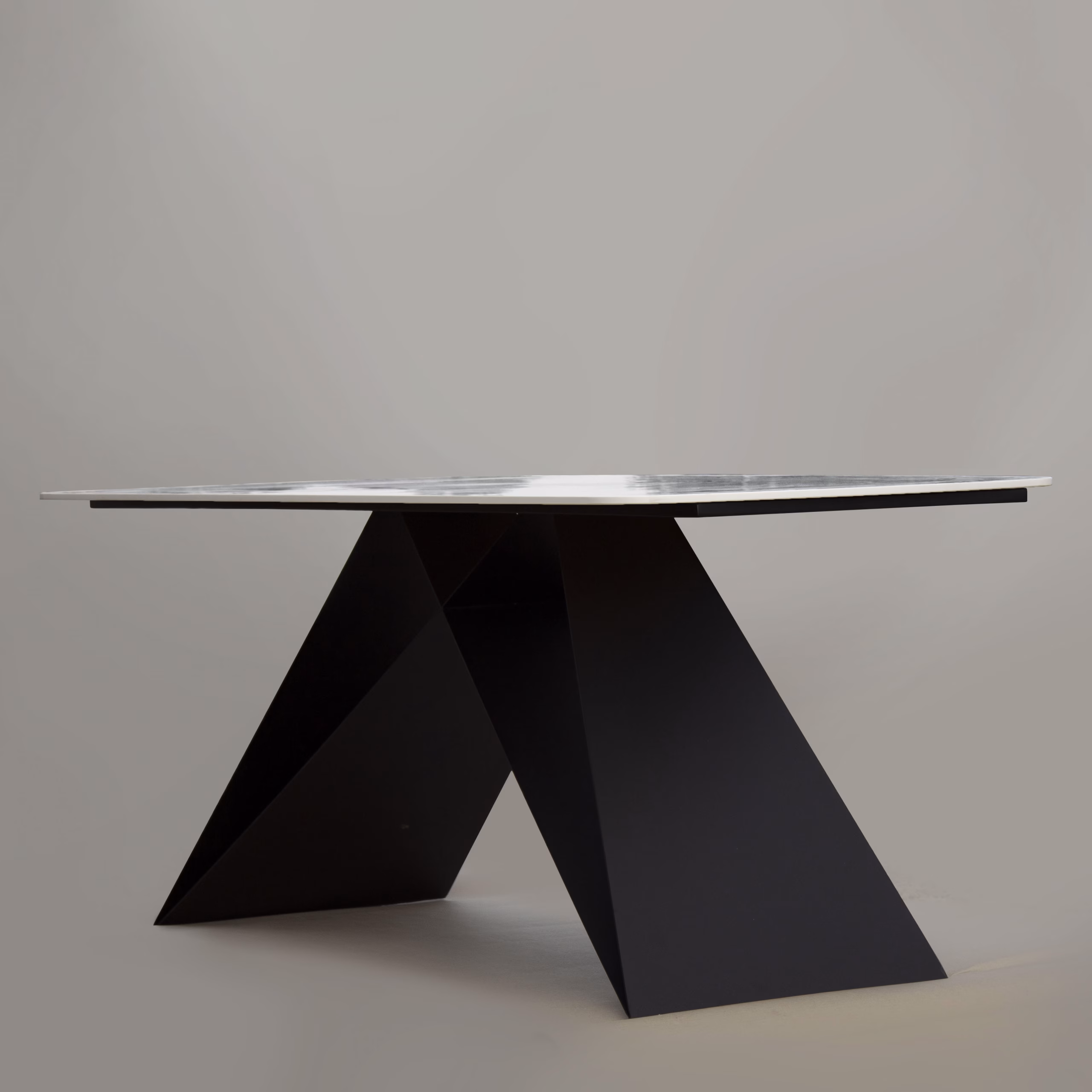 Boteti sto ima elegantnu keramčiku površinu koja unosi luksuz u svaki prostor, dok njegove asimetrične metalne noge pružaju moderan i dinamičan izgled. Savršen je izbor za enterijere koji kombinuju sofisticiranost i savremeni dizajn.