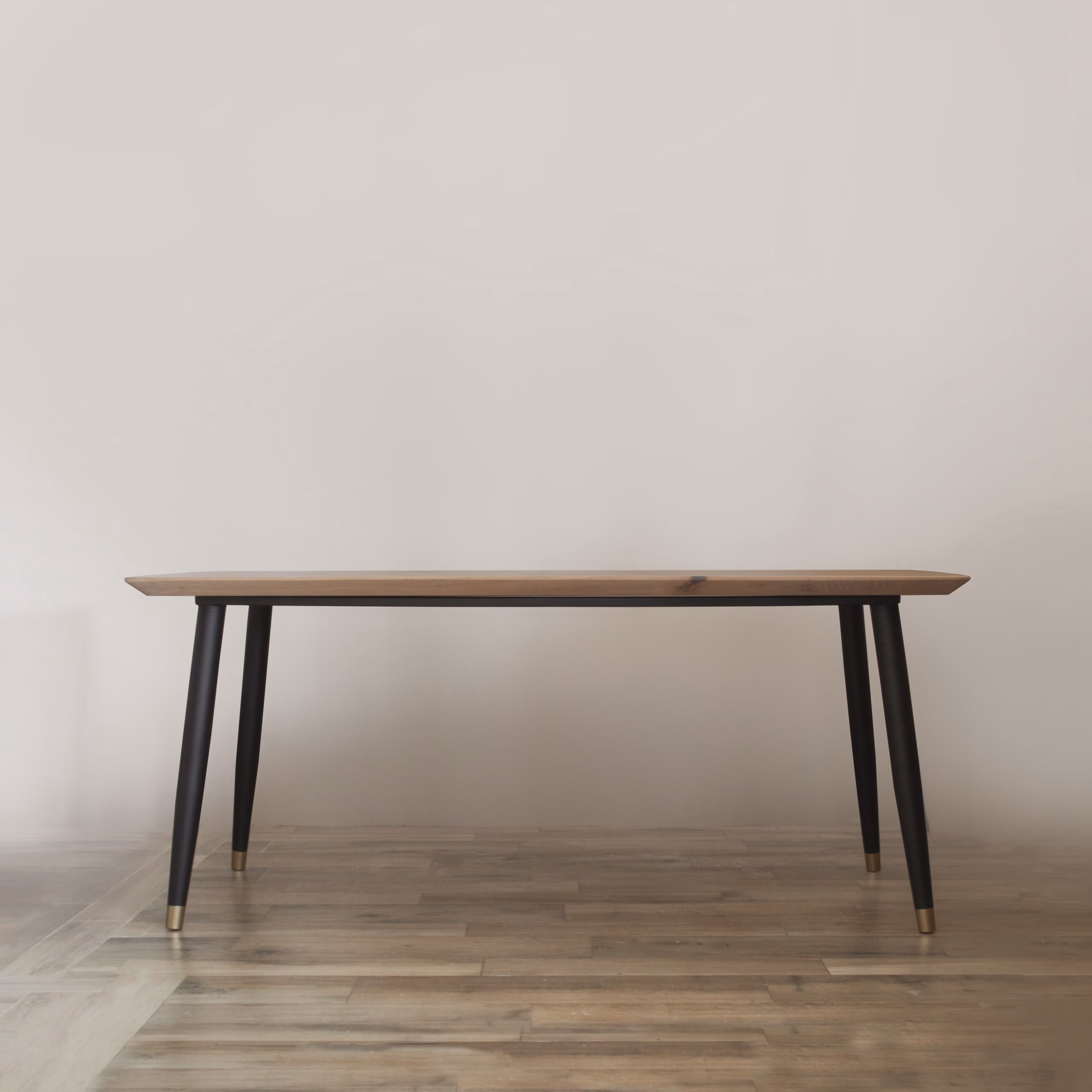 Trpezarijski sto Salem kombinuje prirodnu drvenu ploču sa crnim, suženim nogama koje imaju zlatne detalje na krajevima, stvarajući sofisticiranu i modernu mešavinu boja. Ovaj jedinstveni dizajn donosi eleganciju i toplinu u svaki prostor, savršeno uklapajući se u savremene enterijere.